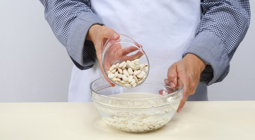 Step 1. Cover 500 g of beans (all that you need) with warm water for 8 hours to make them soften. Then, at 8-hour period, or the next day, if you let them stay soaked for overnight, you need to pour out the water. Wash the beans with pure water before you start cooking. In total, you need two hours to cook them even after you soaked them in water earlier. Put the beans into the pot and boil (the water for boiling should be cold) for 2 hours. Then salt them, mix and discharge the water then. Use a strainer to pour out the excess water, if required.