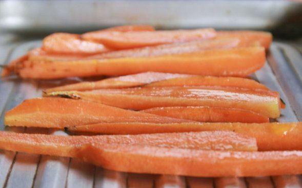 4. Put the carrots into the oven that is heated up to 200 ºC. Fry it till the dish is ready for 20-40 minutes. The time depends on the size of the carrot’s pieces. It is recommended that you turn over the pieces of carrot several times. This way all the pieces will be equally fried.