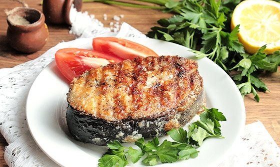 Rub each of your fish stakes with salt, pepper, pour them with lemon juice and strew with your favourite spices at desire. Leave them for about 5 minutes in order to impregnate.