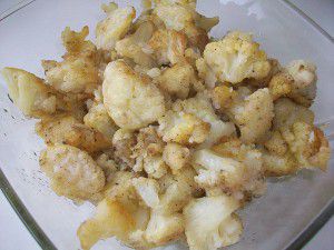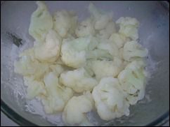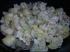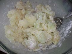 Step 2. Put the boiled cauliflower in a colander and let drain. Add the flour, salt and pepper.