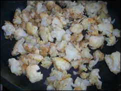 Step 6. The cauliflower should be fried on all sides until it becomes golden brown.