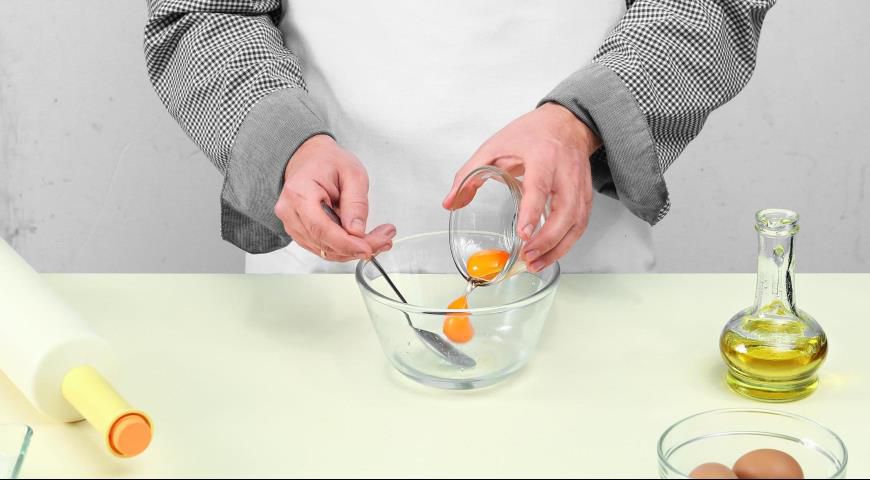 Step 1. Add salt into 1/3 glass of cold water and mix it until fully dissolved. Add the yolks and eggs to the glass and shake it until it’s homogeneous. Pour some oil into the blend and shake it again.