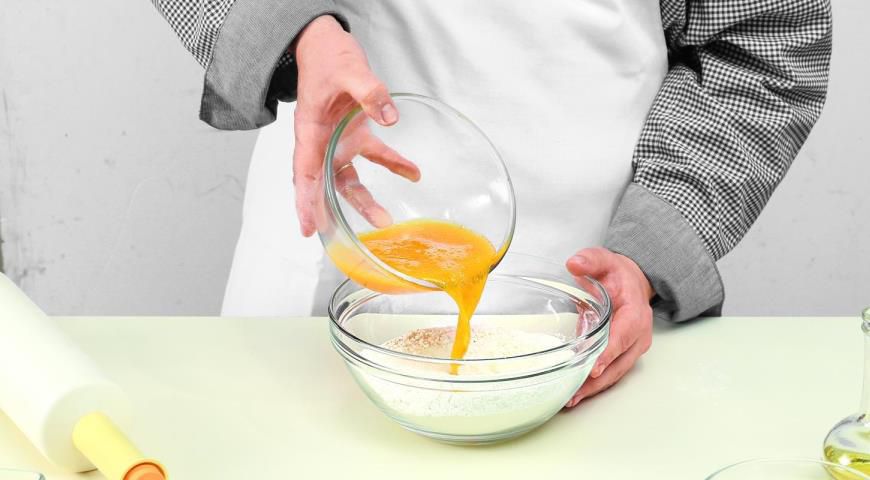Step 2. Bolt the flour into a large wide bowl and make a “pit” in the middle.