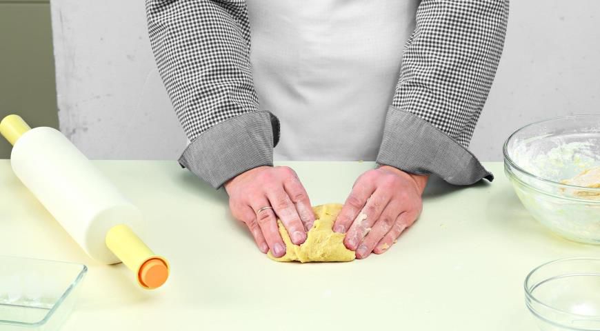 Step 4. Divide the dough into 2–3 parts (it is easier to stir like this) and put them on the working surface. Beat it up, put it into a clean bowl, and leave it in the fridge to set for 6–8 hrs.