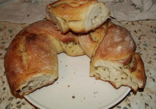 Step 1. This bread is very delicious and has wonderful garlic smell. You can also add herbs that you like. It can be parsley, dill or onion, either dried or fresh. Let’s get to cooking. First, we should add yeast to warn water, mix it with salt and sugar and add a couple of tablespoonfuls of flour. Within 15 minutes this mixture should rise. Bolt 400 grams of flour and add it to yeast mixture gradually.