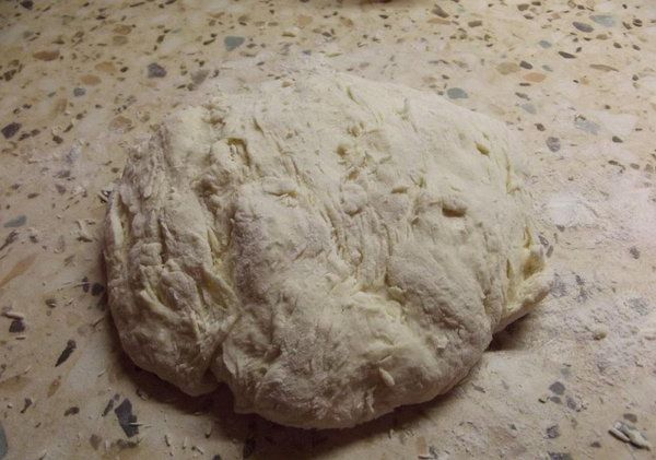 Step 2. Mix the ingredients using a wooden spoon, then add the rest of the flour and knead dough by hand. It should get elastic and soft.