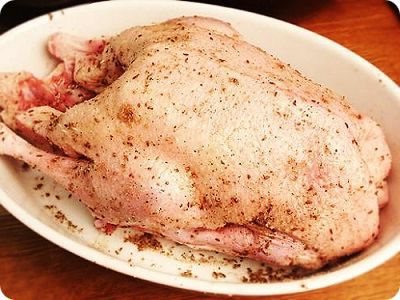 Step 2. Dry the goose, rub some salt and spices all over it as well as from inside. Then put it aside for a night at best.