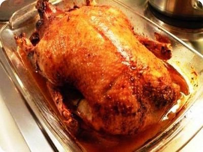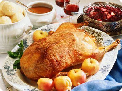 Step 4. You can also stuff the goose with apples. Stitch the goose’s belly and put it on a baking tray with its back up. Put the tray with the goose into the baking oven heated up to 200 C and cook it for about three hours. Pour the fat over it from time to time.