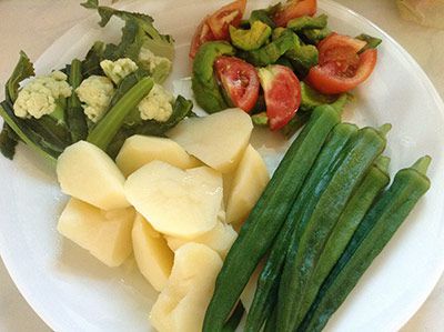 After 10-15 minutes the vegetables will darken and become soft. Take the pods out of the steamer. Let them cool down and then rub with salt. Now you can serve okra with any garnish or vegetables.