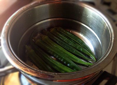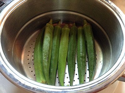 Put okra in a steamer basket or in a sieve.