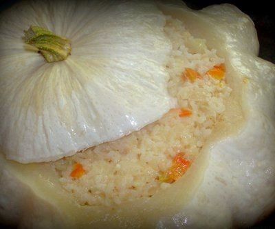 In essence a star shaped marrow is the same as vegetable marrow, but it is unusual, of a flattened shape in the form of a soup carved plate, so why not to use this “plate” for cooking of tasty baked dishes. The big star shaped marrow - overgrow differs in thicker crust and dense pulp, in comparison with young vegetable, that is why it will perfectly be suitable for roasting.