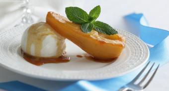 Step 5. Serve the pears with a ball of vanilla ice-cream and a twig of mint.