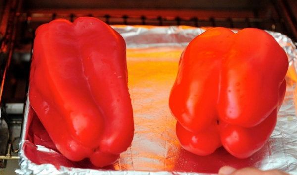 Bake until the peel of pepper starts to become black. As soon as it stars – take them out of the oven immediately.