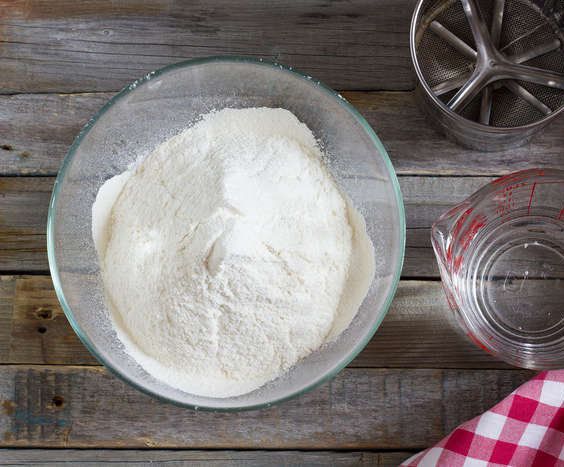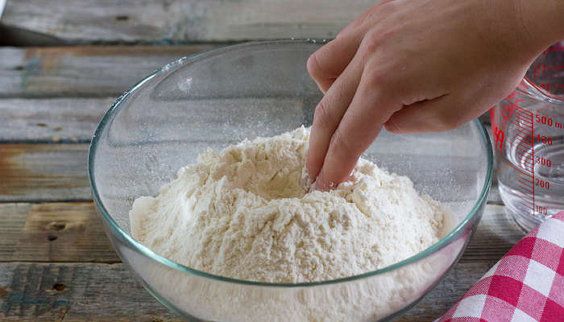 Sieve the flour to make it homogenous with the salt right into the bowl. Make a heap.