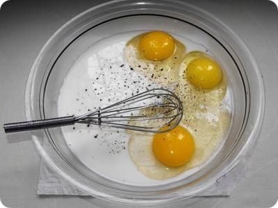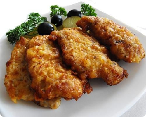 Step 1. Cut pork into portion pieces approximately one and a half centimeters, and then beat off. Now we will pass over the cooking of batter. We shake up in bowl milk with eggs and with garlic squeezed out through the garlic press. Add pepper and salt to your taste.
