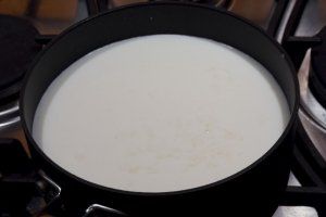 Step 2. Wash the rice with cold water. Pour milk, add salt (this way the milk won’t boil over). Wait till rice boils (the fire under it should be high). Add sugar and vanilla. Turn fire down and boil it for 25 minutes. You need to constantly mix the rice. This way it won’t burn slightly.