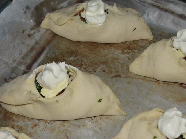 7. Put the patties on a baking sheet, which is laid by paper or oiled. Add some more sour cream on top.