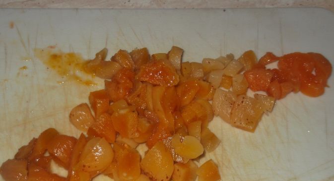 Finely chop dried apricots.