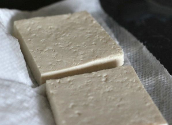 3. Dry each slice of tofu with a paper tissue to get rid of excess water.
