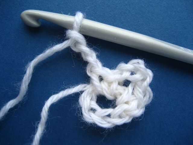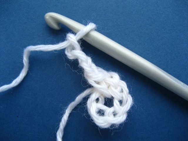 make a chain of several chain stitches, form a ringlet of it and go on crocheting.