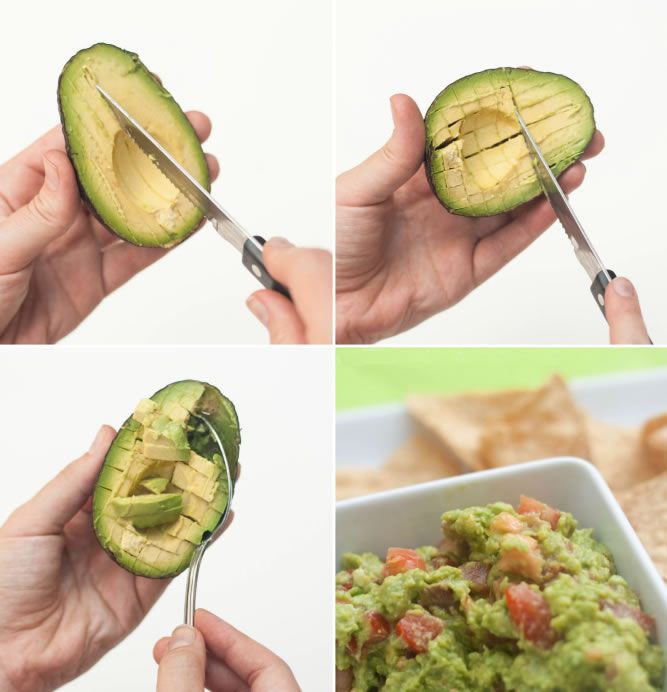 The trick about avocado is simple: slice the fruit while it's still in its skin, and then gently pull the slices out with a spoon. It's so easy!