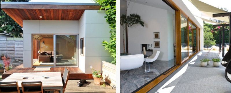 A small area in front of your house may be used as a continuation of your porch. A veranda will not only protect your porch from rain, it will also be a place for having a rest and enjoying fresh air. The best variant for decorating a veranda is folding doors that will protect you from wind or rain: