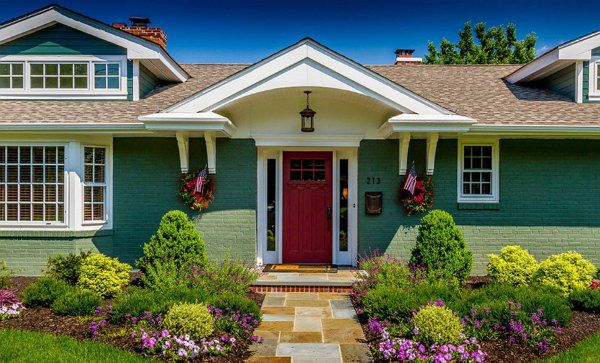 The area 9in front of the entrance to the house is often decorated with various green planting. Since there is a territory in front of a private house, there is no limitation as to the choice of the landscape design. However, flowers and bushes shouldn’t be different from the overall style, colours and shades of colours used for the façade.