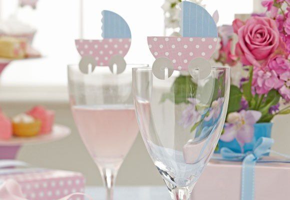 You can use garlands with flags or fabric pieces, paper garlands to decorate the walls. You can either pull a clothesline between the walls and hang on it baby things: bodies, clothes, sliders, etc. You can also hang posters and banners with baby photos of the mom and dad.