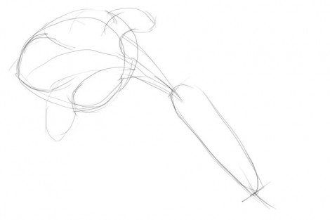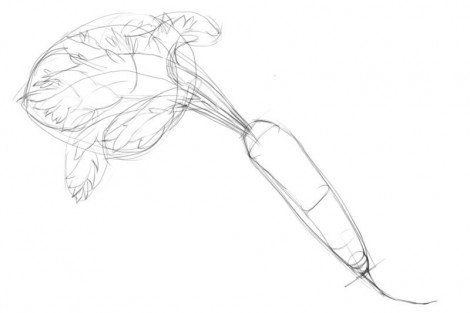 The second step. Remember that a carrot has a cylindrical form. Therefore, it’s important to show this feature on your picture. We start drawing the leaves in a more detailed way.