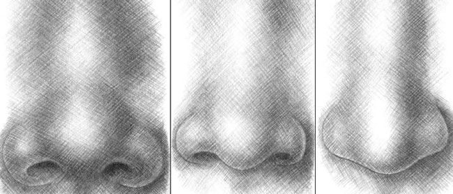 Do cross-hatching to finish the shading. Use 2H or НВ pencils for making the light shades and 4B pencils for the dark ones. You only need to decide where to place the light and the shade. If you use few contrasting shades, the drawing will look flat. That’s why you should use a wide range of shades if a person has a small nose.