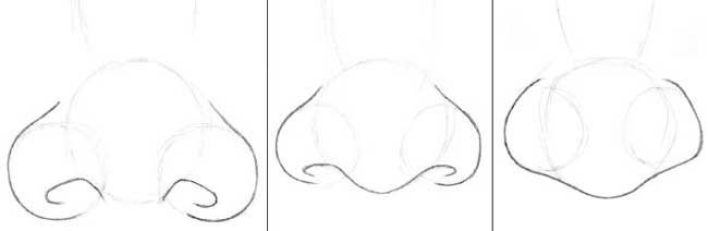 Depending on what type of nose you depict draw two smaller circles for the nose alae. Male nose is usually larger than female. Moreover, you can’t draw a perfect nose because everyone has his own image of a perfect nose in his mind. It also depends on the other facial features as well as on the person’s culture and nationality.
