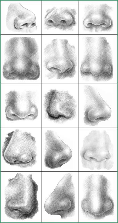 Today you are going to learn how to draw a nose with a pencil step by step. There are many different types of noses. Take a look at the picture below where a nose is depicted from different angles.
