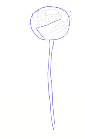 We are starting with a contour of our Rose. Draw a circle firstly. Your rosebud will be placed inside of it so you need to decide on its size. The circle itself doesn’t need to be perfect :) Don’t push on the pencil too much, draw with a light lines as in the end you’ll need to erase it. Draw a flower stalk as well.