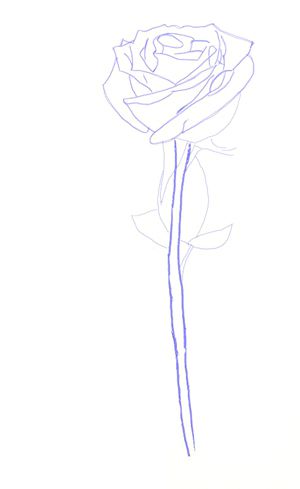 Draw your flower stalk a shape and add leaves, it’s for you to decide about the quantity of them. And don’t make the leaves to big. Remember that they have veins which you also need to draw to make your rose look realistic. Now erase unnecessary contour and the leaves in details. The beauty of the Rose drawing lies in the correct image of the petals. The upper contour of each petal is drawn by two lines connecting at the edge of its edge.