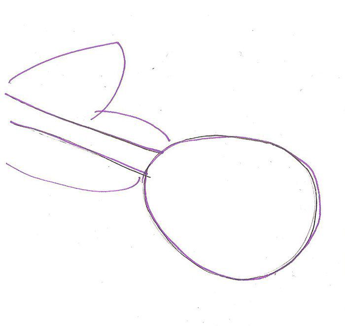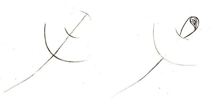 1. Draw a long arc - stem. Set an upper and lower boundaries of the bud, as well as its center.