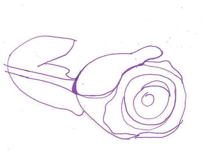 2. Now draw the middle of a bud. It consists of a number of twisted leaves.