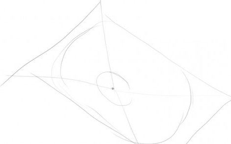 The first step. You need to draw a rectangle and two circles inside it – one big and one small.