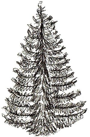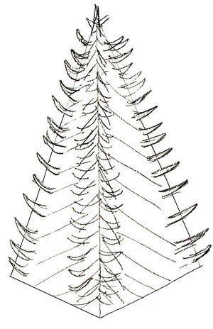 1. Drawing a Christmas tree. Outlining the basic shape.
