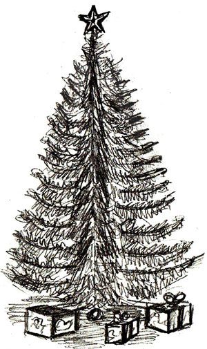 At this stage we are to make the tree features look distinct. Use a sharp and hard pencil to draw as many basic shape lines as possible. The tree will be beautiful if you make the branches symmetrical. Now the drawing is almost complete. All that is left to do is to decorate it and add a star at the top.