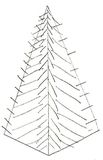 The Christmas tree will have appropriate shape if you outline it first. Draw the figure as shown. The tree shape will be even and neat if you draw a line right in the middle of the figure. It will make the trunk and help you align other elements. To draw 3D branches and needles, you should make a corner that sticks out at the bottom.