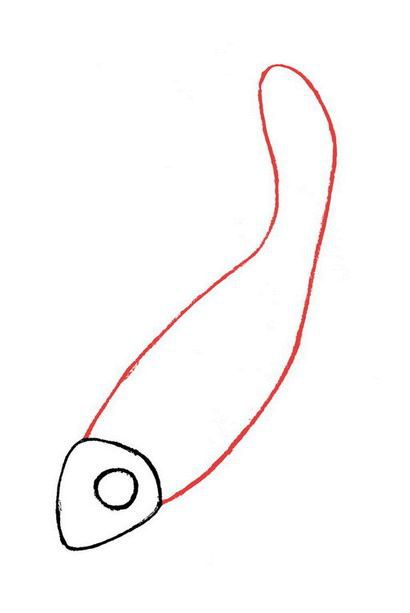 2. Draw a large long oval, which begins in the upper right corner of the triangle. The oval should be gradually tapered off. This is the body of the fish.