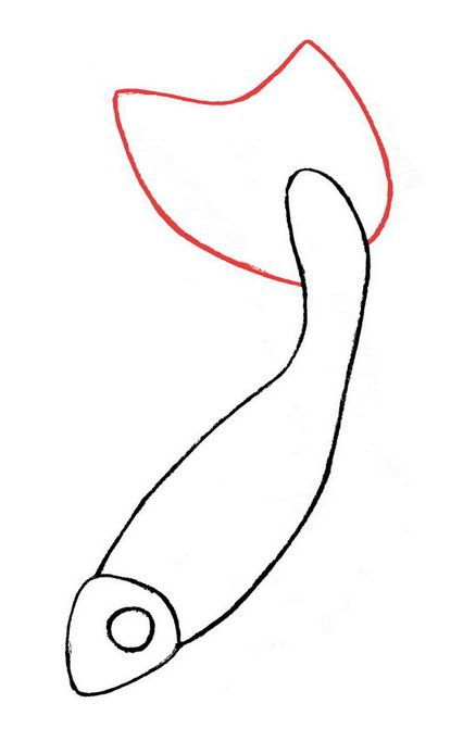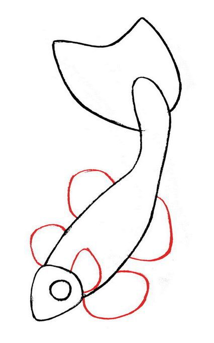 4. Draw two semicircles on the sides of the oval. Another small semicircle draw near the head. These are the fins.