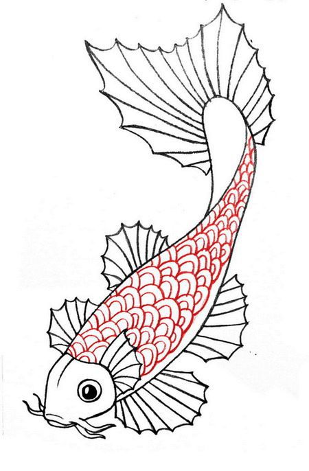 Koi is a kind of carp, which is found in the East - in Japan. In Japan, kanji word has two meanings - "love" and "carp", therefore Koi fish has become a symbol of love and friendship. Koi fish is a popular tattoo. We'll show you how to draw it.