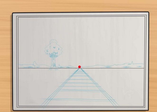 2. Choose the location of the “disappearing” dot. This is exactly the thing that will define the perspective effect. For example, in the majority of cases the “disappearing” dot will be located horizontally in the center. Vertically, it will be over the line of the horizon. If you shift this dot to the right side, it will seem as if the view is shifted to the left side form the objects. For some objects, “disappearing” dots may be located higher or lower than the line of the horizon. This depends on the way the surface is tilted from the point of view of the ground.