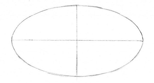 Step 3. One more not that easy stage. Inside the oval, we draw one more oval, only, a smaller one. It should also be ideally even.