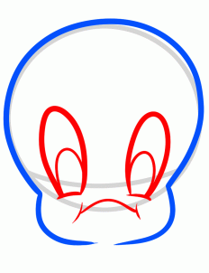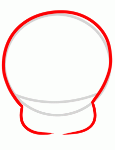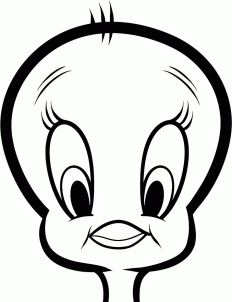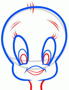 Step 2. Using this form, draw a real Tweety’s head. Note that Tweety has a big dome shape head, at the same time the lower part of its face is much smaller. Draw the cheeks and proceed to the next step.