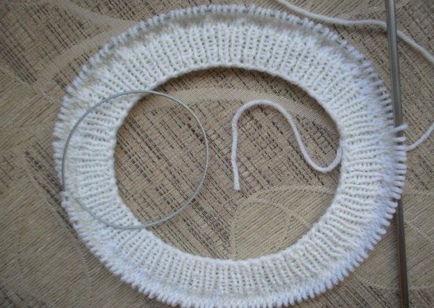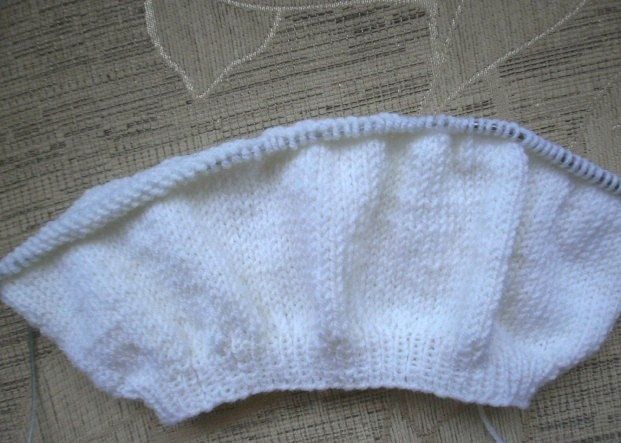 Then, take needles № 4,5 and make 8 cm of knit stitches as well.