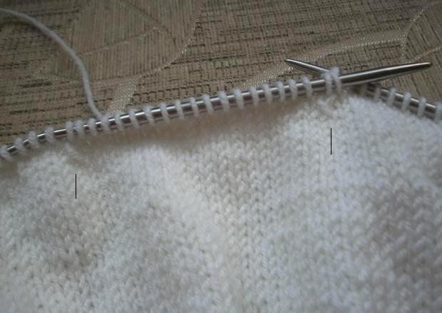 Further, make only knit stitches and add 24 stitches evenly. You should get 152 stitches (76 on each needle).