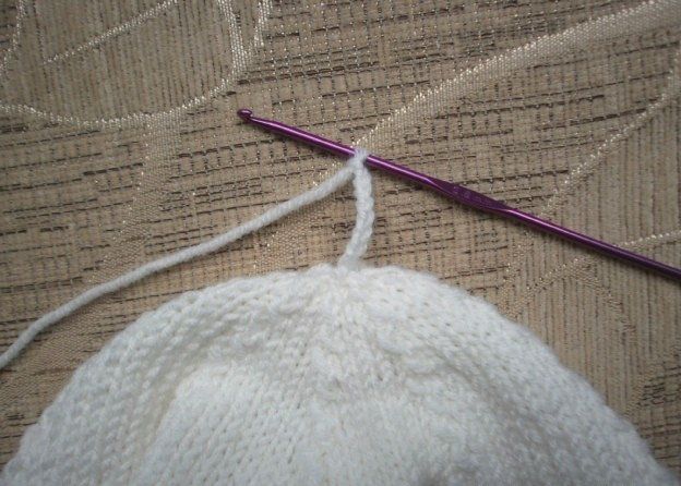 Make a loop. Make 8 chain stitches with the help of crochet № 2,5. Then, make one row of single crochets and connect at the bottom.