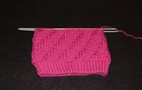 Having knitted the desired width of the ribbing (here the ribbing is 4 cm wide), we start knitting the pattern (if you are just learning to knit, you can continue to knit by stockinette stitch).
